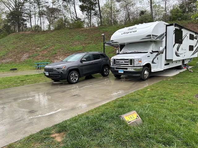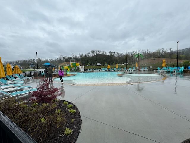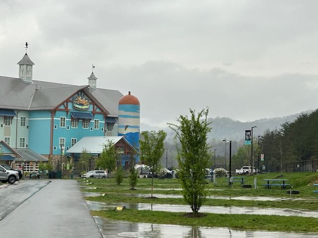 Frankly, this place is incredible. Every detail is is on brand with the Margaritaville lifestyle – a Parrothead paradise! Even the campsite numbers are listed on Margaritaville license plates! Plus, there is a lost salt shaker hidden somewhere in the lodge each day. If you find it, you win a prize. I imagine this place is mobbed during the high season, but for now, it’s completely empty, from the arcade and game room, to the activity hall and restaurant. They have the biggest foosball table I have ever seen – big enough for at least six people to play on each side! We did find a couple of families also escaping the rain in the duckpin bowling alley, which we absolutely will come back to one evening.
