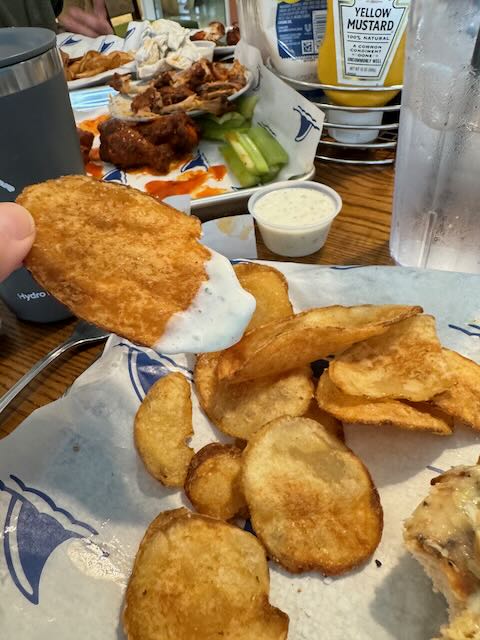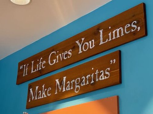 Lunch in the bar put us in vacation mode! Wings, burgers, tacos, quesadillas and these incredible hand-cut potato chips. (Elon folks, – these chips are a reincarnation of the chips from Ham’s – I was right back in Burlington in 1999 – Yum!) This quote was right above the bar – the right place at the right time. We make our own fun, pivot and reboot.
