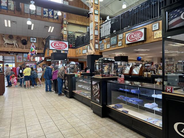 With full bellies, we headed back to Kevin made a plan. What are the most Smoky Mountain things we could do in the rain? Were you thinking visit the largest knife store in the world and then attend the Dolly Parton Stampede Dinner Show? Probably, not, but there it was.
