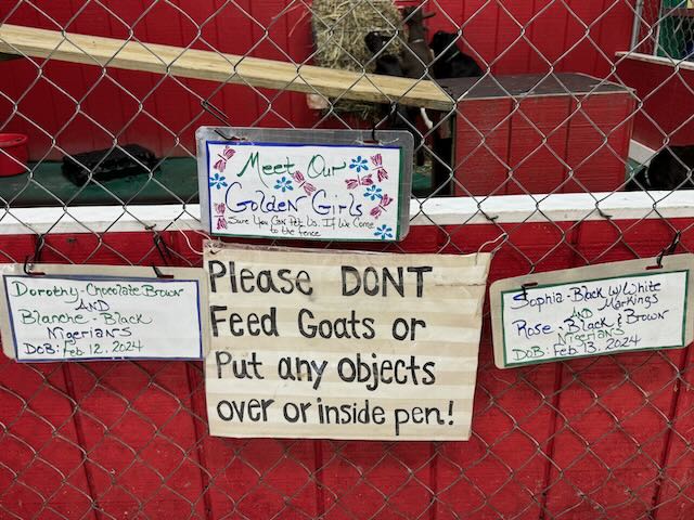 Topping off this part of the day’s adventure was a trip to the Goats on the Roof tourist shop. Upon entering the store, we quickly realized that this was not the store’s primary location, as there were not goats on the roof, but instead, goats in a small pen at the back of the store. At any rate, we met the Golden Girls, four super-cute Nigerian goats born in February and shopped around the store. Marlie bought an old-school slingshot and entertained herself behind the camper for a couple of hours in the afternoon. We’ll find the original Goats on the Roof store later this week.