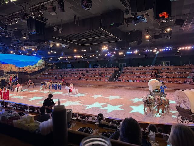 Obviously, the real Dolly Parton was not actually in the show, but her spirit was present… and her voice… in many of the songs included in the show. As you might expect, it was a mix of horse riding, storytelling, acrobatics, comedy, and patriotism – all good fun! There was even a competition between the North and South, which ended with a flag-passing race. This event ending up sinking the North since our side was full of bus-tour passengers who followed the rules of the competition instead of cheating like the rest of the crowd. All in all, a fun time enjoyed by everyone in our group!